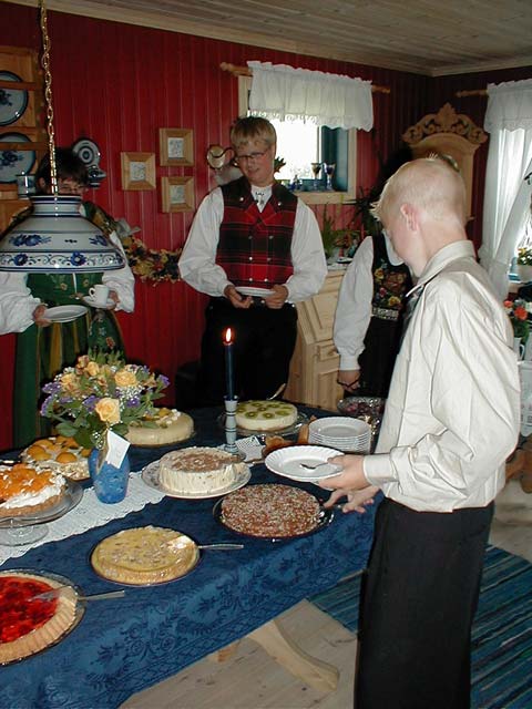 Konfirmanten får begynne på kakebordet.