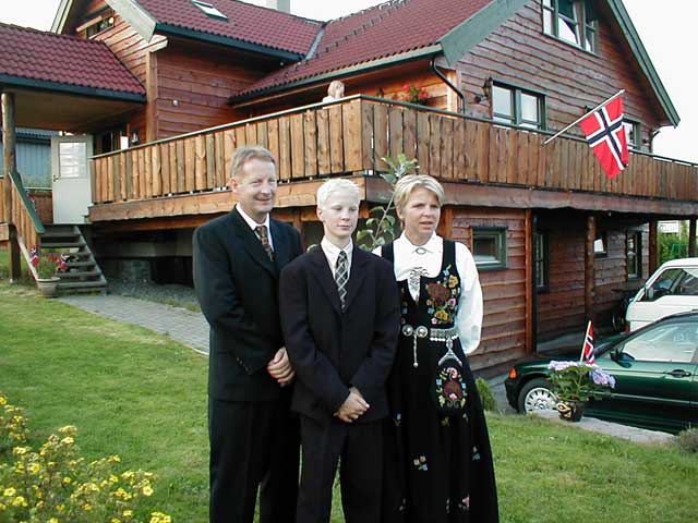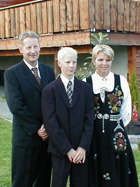 Oppstilling av konfirmanten og foreldrene