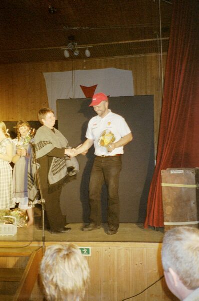 brukes av kjørerne. Han gav også en del T-skjorter med diverse rallyreklame