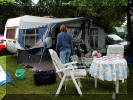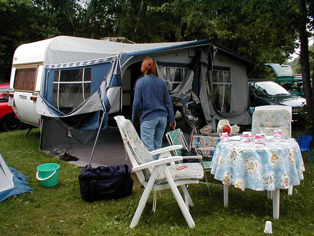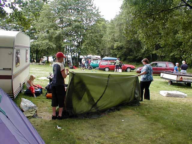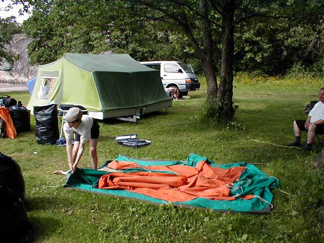 med å ta teltene ned.