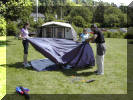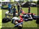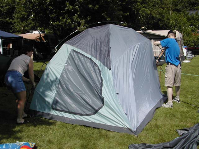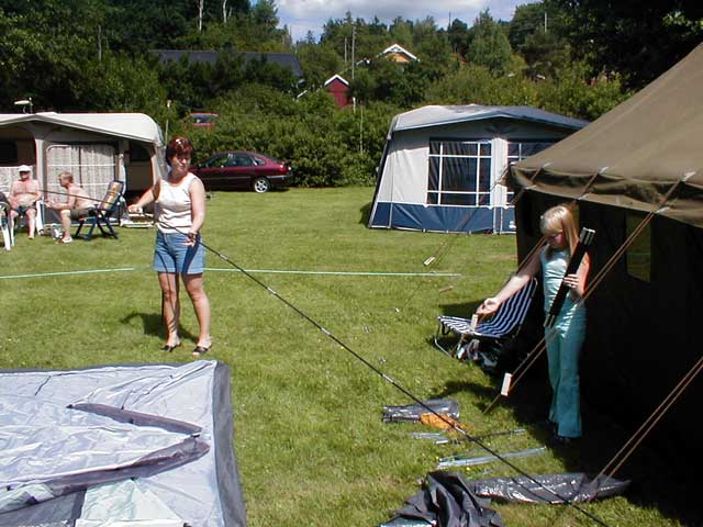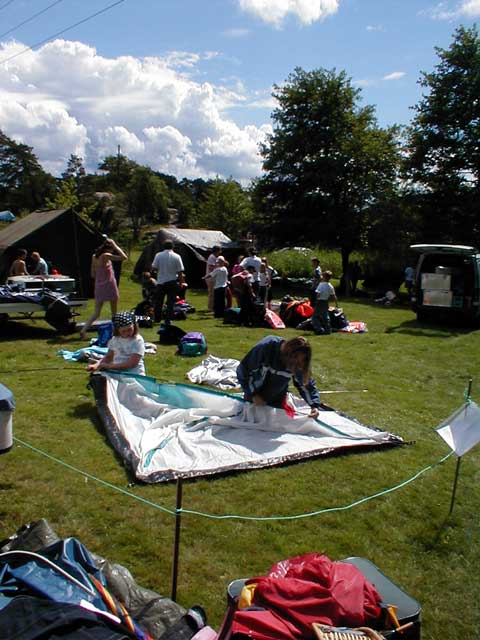 Det var mange telt som skulle opp og alle hjalp hverandre som best de kunne.